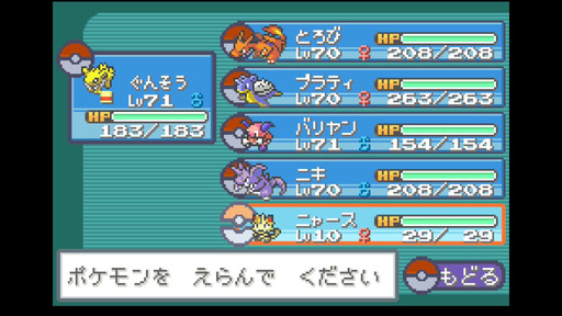旅パです。ニャースは秘伝&もの拾い要員でした。